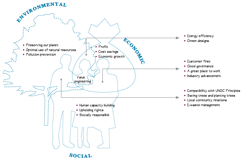 This is the second pillar of our sustainability framework. By the very nature of what we do, most of our projects have a direct and often significant impact on the environment. We are a heavy consumer of natural resources; our operations, if conducted without proper regard to their effects, may pollute, impoverish or degrade the environment. While destructive of environmental value in themselves, such effects could also result in reputation loss and loss of economic value through fines for non-compliance with pertinent laws, rules and regulations.