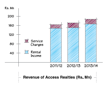 Access Realties 2 (Private) Limited which is a fully-owned subsidiary of Access Realties (Private) Limited is engaged in the development of Access Tower II, a state-of-the art office complex. The Company which is a BOI undertaking commenced piling work in February 2014 and construction is expected to complete in the latter part of 2016. Upon completion the tower will consist of 29 floors with a total floor area of approximately 390,000 sq.ft. with a rentable area of approximately 190,000 sq.ft.