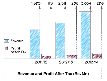The investment in SML has paid off as demonstrated by the improved performance of SML during the year under review. Turnover for the year was recorded at approximately Rs. 3,054 Mn driven mainly by new vehicle sales, sale of spare parts, workshop revenue and agency commission. This was a growth of 32% over the corresponding period. The bottom line of the Company recorded at Rs. 286 Mn is a 39% growth compared to the previous year. This growth is partly attributed the new entry to the luxury automobile segment of the market via its 50% owned entity SML Frontier Automotive (Private) Limited. With effect from 1st April 2013, SML Frontier Automotive (Private) Limited operates as the authorized distributor for Land Rover/ Range Rover automobiles in Sri Lanka.