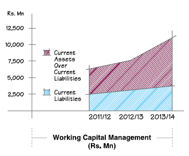 The Company made investments in Property, Plant and Equipment amounting to approximately Rs. 391 Mn. Investment in capacity building was low in 2013/14 compared to the last two financial years since the Company believes that it has built sufficient capacity to sustain growth at double digit levels in the short to medium term. At present the Company possesses one of the most technically advanced and up-to-date fleets of heavy construction equipment and machinery in Sri Lanka. In addition to successfully consolidating the Company’s multidisciplinary activities and supply chain, they have also contributed to the turnover and the overall profitability of the Company. The total production income during the year accounted for approximately 4% of the total turnover at Company level. This contribution is a drop compared to the previous financial year since the majority of the output of plants was utilized for Company’s major projects.