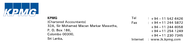 In our opinion, so far as appears from our examination, the Company maintained proper accounting records for the year ended 31st March 2014 and the financial statements give a true and fair view of the financial position of the Company as at 31st March 2014, and of its financial performance and its cash flows for the year then ended in accordance with Sri Lanka Accounting Standards.