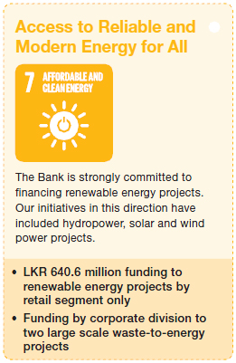 Given our status as the largest bank, as well as the single entity making the highest profit in Sri Lanka, we have the potential and a duty to make a major contribution in this regard. Hence, we have adopted the SDGs to our sustainability ethos and thereby have embedded those into our business model.