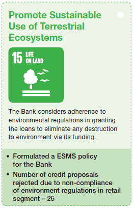 The Bank also took an important initiative during the year to formulate its Environment and Social Management System (ESMS). ESMS policy is now completed and to be implemented from the early 2018. The ESMS will further strengthen the environmental and social screening we conduct in evaluating our credit proposals. It will help the Bank to manage its social and the environmental risk in a prudential manner.