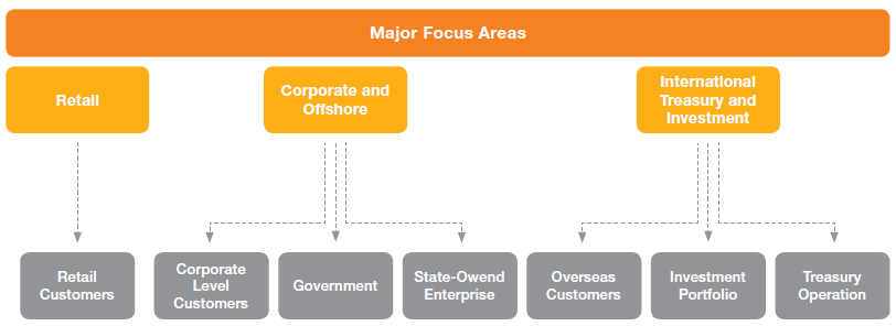 The Bank has three main core areas of operation: retail banking, corporate and offshore banking, and international, treasury and investment.
