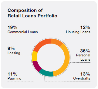 Corporate and offshore banking contributed 47% to the Bank’s loan portfolio in 2017 and 28% to the profit before tax. The Division assists the country’s overall economy through financing large corporate sector entities, projects and also to the direct Government and SOEs.