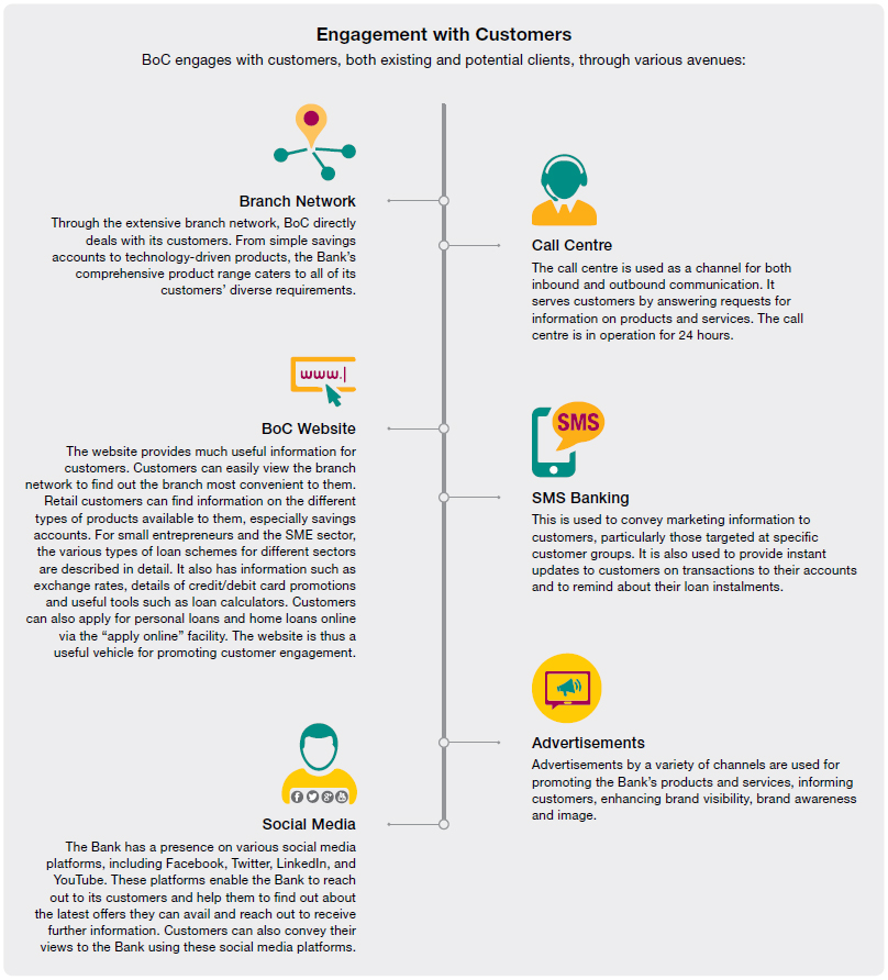 The Sri Lankan banking industry is more competitive than it has ever been, and factors such as customer service and convenience are distinguishing features that customers look for. With a strong network of 575 branches 48 limited service branches across the island, BoC maintains a strength in geographic reach that few can match. In addition, two mobile branches were introduced during the year, 41 branches were upgraded to serve customers more efficiently, and 86 ATMs and 45 CDMs were installed. As the Bankers to the Nation, we have always been in the forefront of giving the best to our people irrespective of their social standing. We have always taken lead steps in taking the technology from the towns to the periphery. An example has been the introduction of ATMs and especially CDMs; our efforts to not limit the technology to a few but take it to the many have been quite successful. This demonstrates the changing profiles of customers even at the grass roots and their demand for improved and next level financial services.