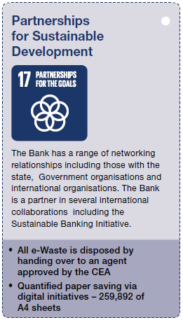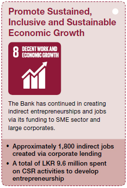 Sustainability is a cornerstone of the Bank’s strategy. We have identified pivotal areas of economic growth and the strategic CSR activities of the Bank are conducted under these areas; education, entrepreneurship development, preserving national heritage, ethics and values, livelihood development, social development and environmental conservation.