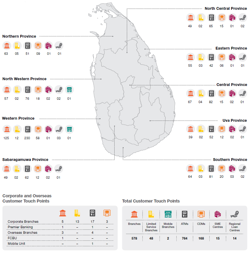 The Sri Lankan banking industry is more competitive than it has ever been, and factors such as customer service and convenience are distinguishing features that customers look for. With a strong network of 575 branches and 48 limited service branches across the island, BoC maintains a strength in geographic reach that few can match.