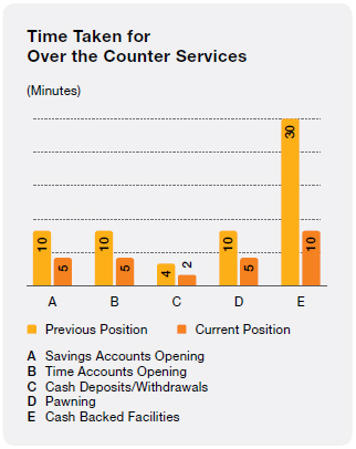 The Bank converted all its branches to a 5S environment by the end of 2017. The pillars of the 5S environment – Sort, Set, Shine, Standardise, Sustain – represent a means of better organising and managing workspaces while cutting down on wastage. The successful implementation will help to ensure that customers benefit from significant process improvements and short lead times on general banking services such as account openings and processing loan applications.