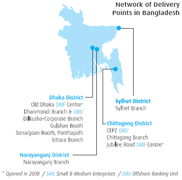 Having commenced operations with two branches and two booths in 2003, today the Bank has expanded into a six-branch operation augmented by three booths, two SME Centres and 13 ATM locations, including four off-site locations. The impressive growth record of our operations in Bangladesh from inception to date is shown below.