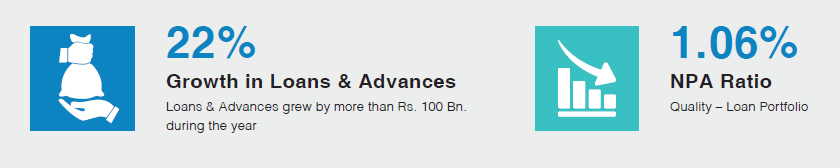 A proven track record and extensive reach enabled a 11.39% growth in deposits of the personal banking to Rs. 494.225 Bn. accounting for an estimated 79.19% of deposits of the Bank. A relentless focus on customer expectations inspired innovation of products to fill emerging gaps in the portfolio arising from transitioning demographics.