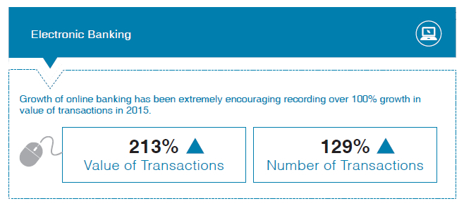 Customers increased their usage of the electronic banking channels during the year resulting in high growth rates for online Banking, mobile banking and the Bank’s flagship product for corporates, PayMaster. Key trends supporting growth in this area included the declining trend in prices of tablets, smartphones and computers resulting in higher penetration levels.