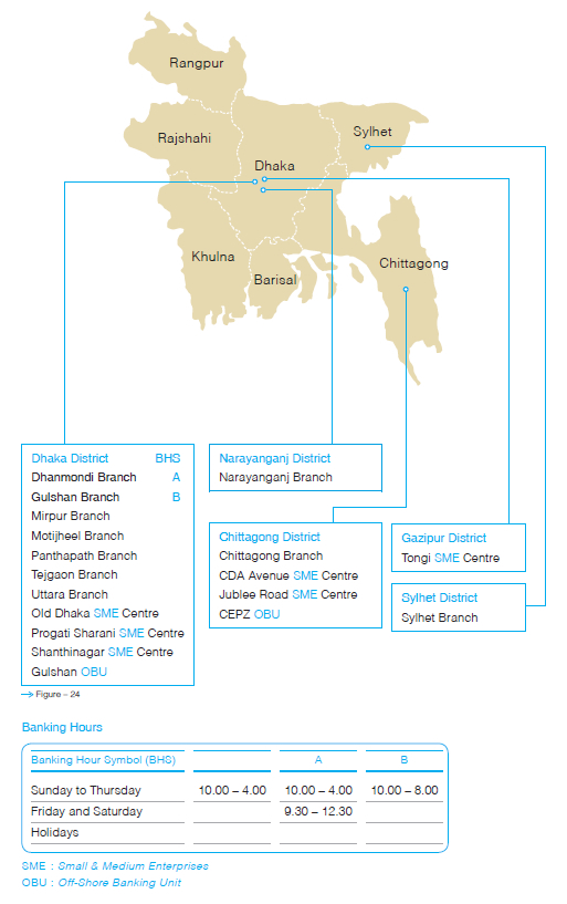 Commercial Bank of Ceylon (CBC) commenced its operations in Bangladesh by acquiring the banking business of Credit Agricole Indosuez in November 2003. Since commencement, CBC has established its position well above the other Regional Banks operating in the country growing from two branches and two booths to 10 branches, 6 SME Centres and 2 Offshore Banking Units (Figure 24). The number of employees has also grown from 126 at inception to 255 as at close of 2015. Operating mainly as a corporate bank, CBC Bangladesh competes with SCB, HSBC and Citi Bank and is positioned ahead of other regional banks operating in Bangladesh.