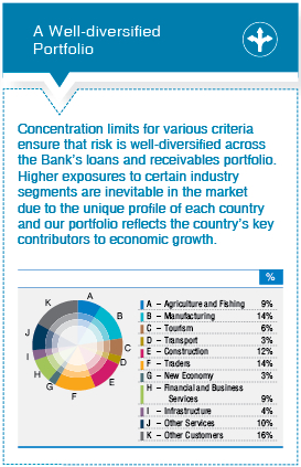 - Risk Appetite Statement – This includes limits on maximum exposures to industry sectors, products and geographies with reference to qualitative and quantitative criteria which encompass maturities and risk ratings. It also specifies High Risk and Prohibited Appetite which are reviewed on a regular basis and amended as deemed necessary. Proposals in the High Risk Category may be approved under exceptional circumstances which will take into account the business rationale and risk mitigants whilst proposals for Prohibited Appetite are not entertained under any circumstances.