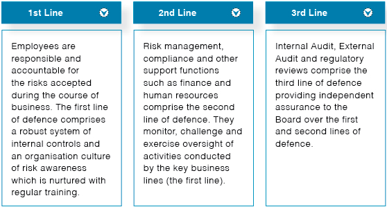 The Bank deploys a ‘three lines of defence’ governance model (Figure 11) which facilitates accountability and transparency through clear identification and segregation of roles.