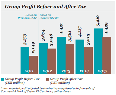 Overall, the profit after tax of the Group in the financial year under review was LKR 4,439 million, an increase of 38% over the LKR 3,215 million in the previous financial year.