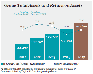 The total assets of the Group recorded a growth of 20% and stood at LKR 210,610 million on 31 March 2015 compared to LKR 174,995 million on 31 March 2014.
