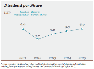 DVB had surplus distributable reserves of LKR 3,255 million on 31 March 2015. The return on this investment based on year ended 31 December 2014 results of DVB was 13.4 %.