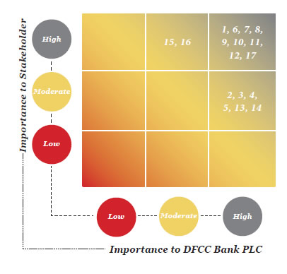 As per the materiality analysis, we have identified the aspects that are of importance to stakeholders and of importance to the Bank in the context of our economic, social and environmental agenda for sustainable value creation. For the ease of focus and analysis, the aforementioned have been mapped on the two-dimensional matrix featured below as per the GRI G4 Sustainability Reporting Guidelines.