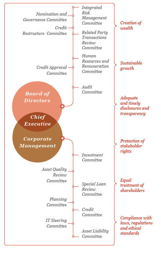 The Bank practices high standards of corporate governance based on the OECD principles of good governance. OECD principles of good governance are based on the following six guidelines:
