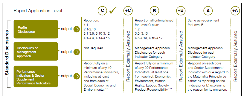 *** Performance Indicators may be selected from any finalised Sector Supplement, but 14 of the 20 must be from the original GRI Guidelines